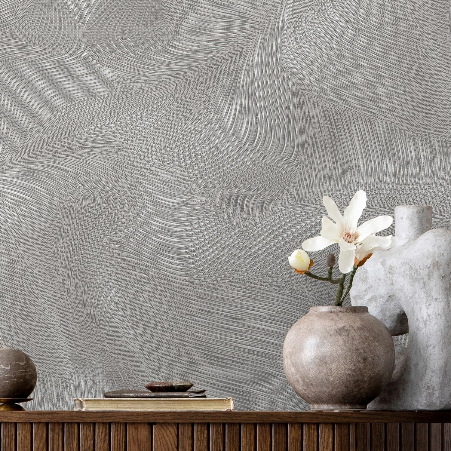 Главная роль в коллекции ARIA от Victoria Stenova, безусловно, принадлежит полупрозрачной ветке, выполненной слегка небрежном итальянском стиле, без строгой симметрии, присущей строгим классическим дизайнам обоев. Роскошный и ненавязчивый дизайн в жемчужной гамме смотрится очень целостно и органично в современном интерьере. Люди, выбирающие неоклассические интерьеры, характеризуются как успешные и рассудительные приверженцы традиций. Но наши обои одинаково уместны и в огромной гостиной с 3-х метровыми потолками и в маленькой спальне с потолком 2.5 метра. Мы декларируем тренд на шелковое сияние полотна, на благородные светлые переливающиеся фактуры, при производстве этой коллекции мы используем только перламутры и металлизированные краски. Сложное, многоуровневое тиснение фона словно светится изнутри, в этом проекте мы выбрали тактику максимального объединение центрального элемента и фона, уделив одинаковое внимание в проработке и использовании декоративных эффектов на всей фактуре в целом.