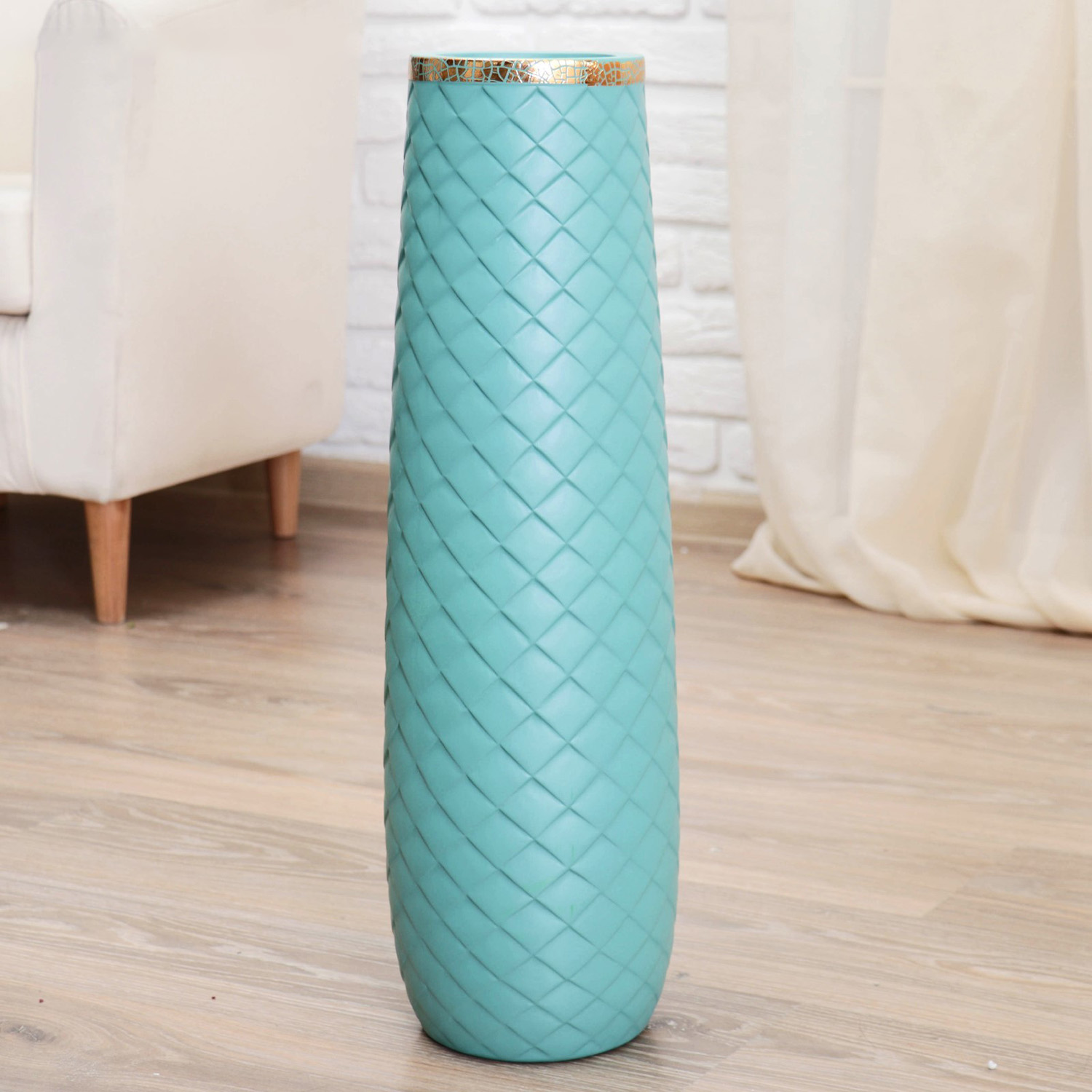 Ваза керамика напольная "Геометрия люкс" ромбики, 14х60 см, бирюзовый 4635444