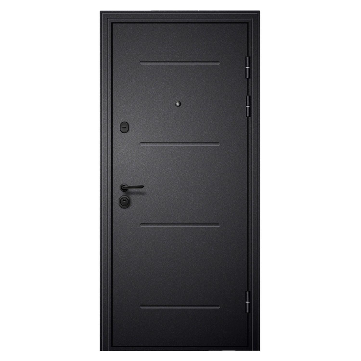Дверное полотно, дверной короб, петли- 3 шт., противосъемные ригели - 3 шт., наличник, уплотнители -