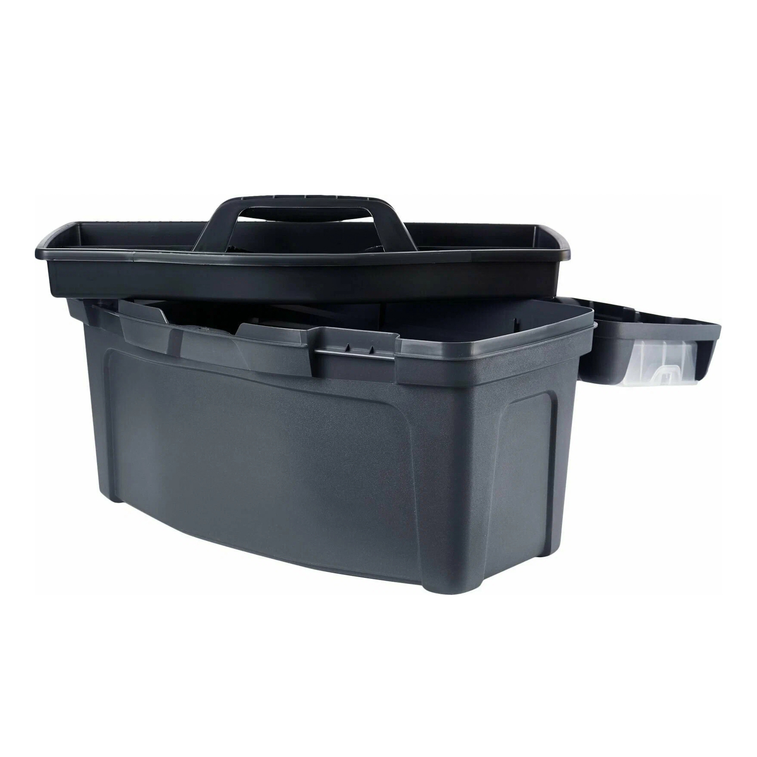 За счёт опор в основании, ящик устойчивый и имеет максимальный объем хранения. Дополнительный съемный лоток и внешние отделения на крышке позволяют хранить необходимые инструменты и мелочи, например, саморезы и дюбели.