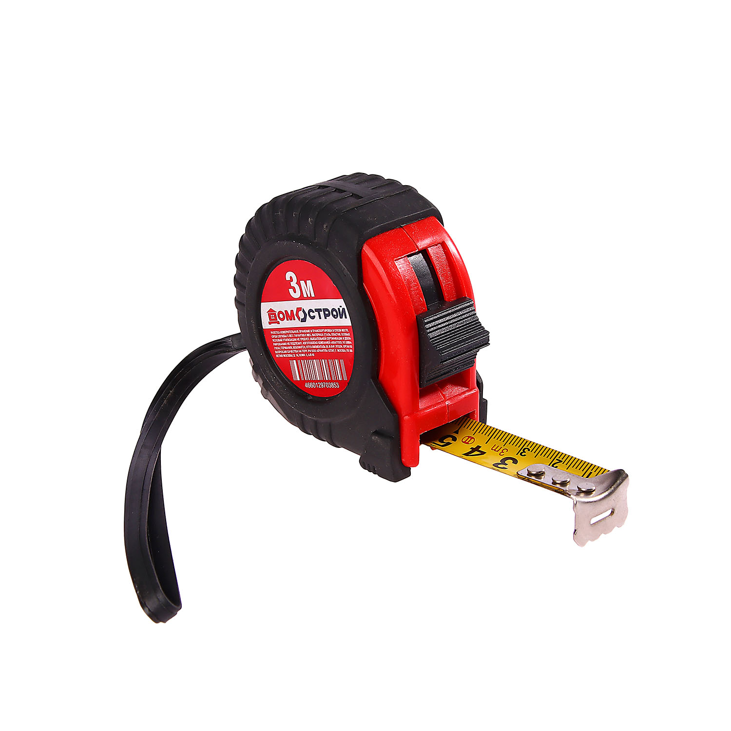 Рулетка 3м х18мм резино-пластик. корпус стальная лента фиксатор Домострой *12/120