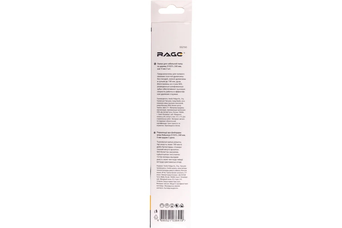 Полотно д/сабельной пилы ДЕРЕВО 2шт 240/5мм быстрый рез S1531L арт.552150 RAGE VIRA *10/100