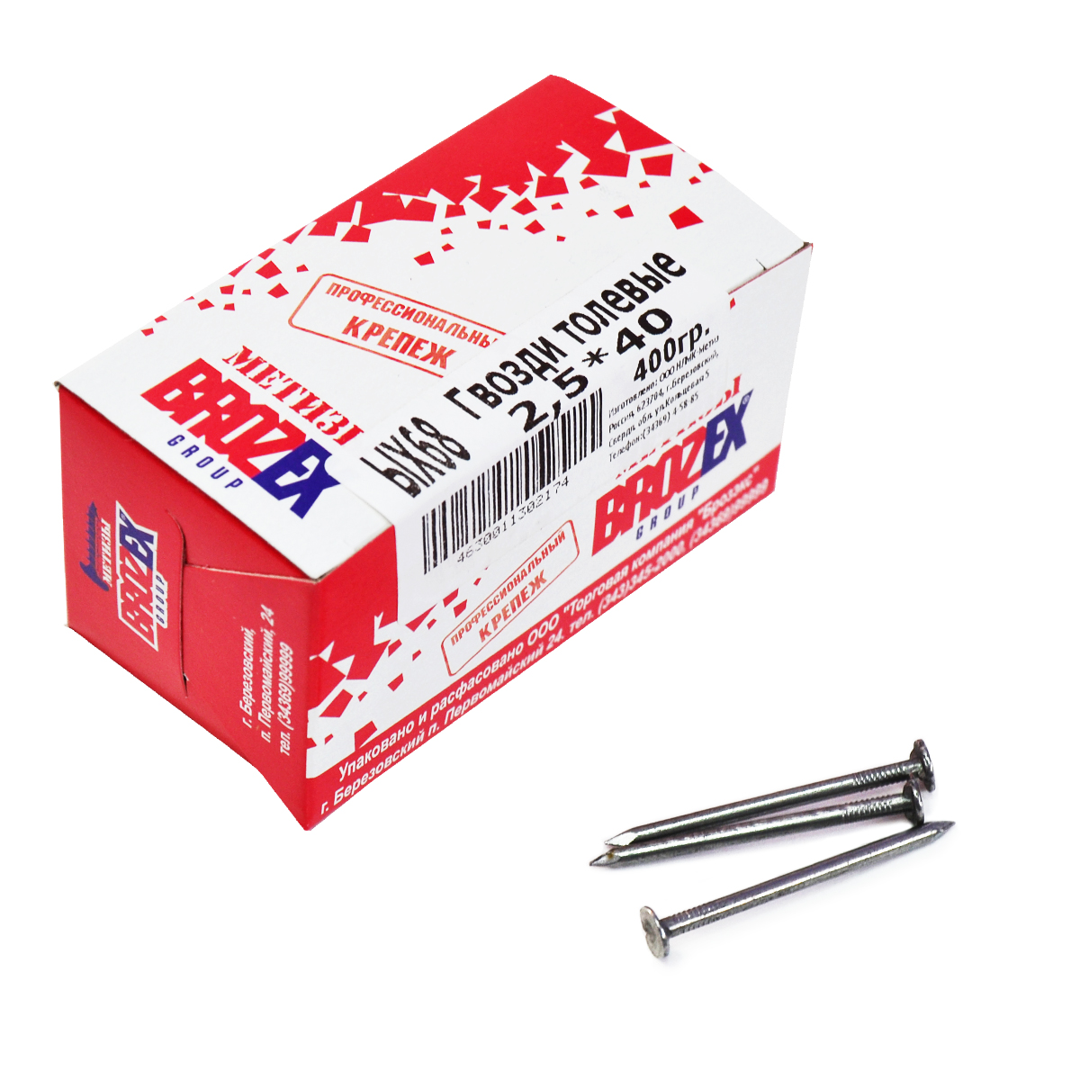 Гвозди толевые 2.5х40 мм BROZEX, 0.4 кг