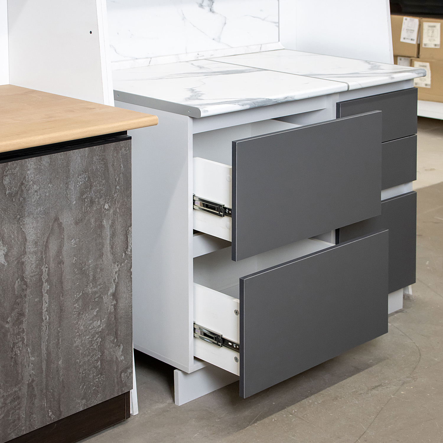 Шкаф напольный 600х850х600 мм BROZEX-WOOD Серый лед, с двумя ящиками, серый / графит
