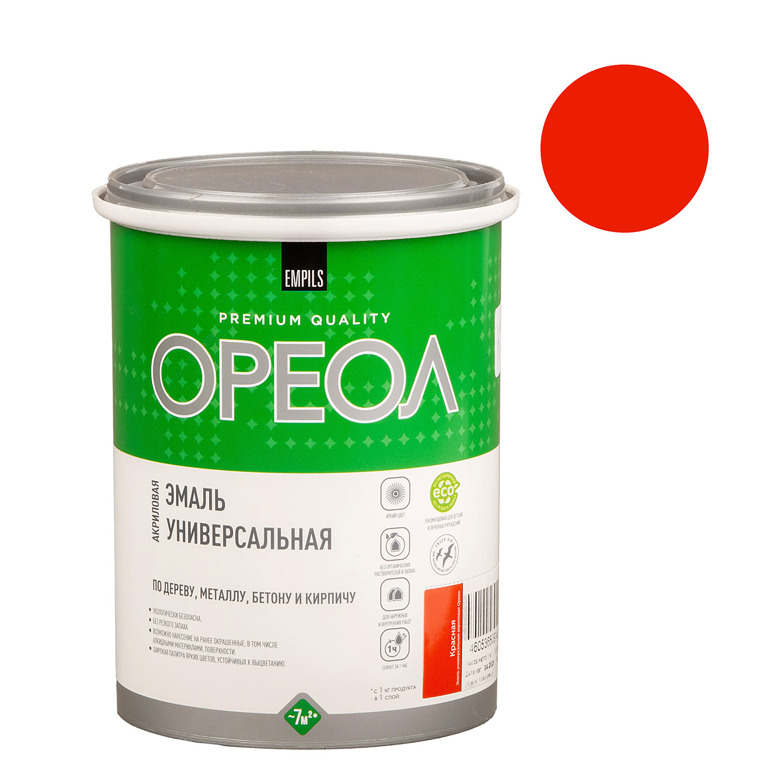 Эмаль акриловая красная 1 кг Ореол *1/6/336