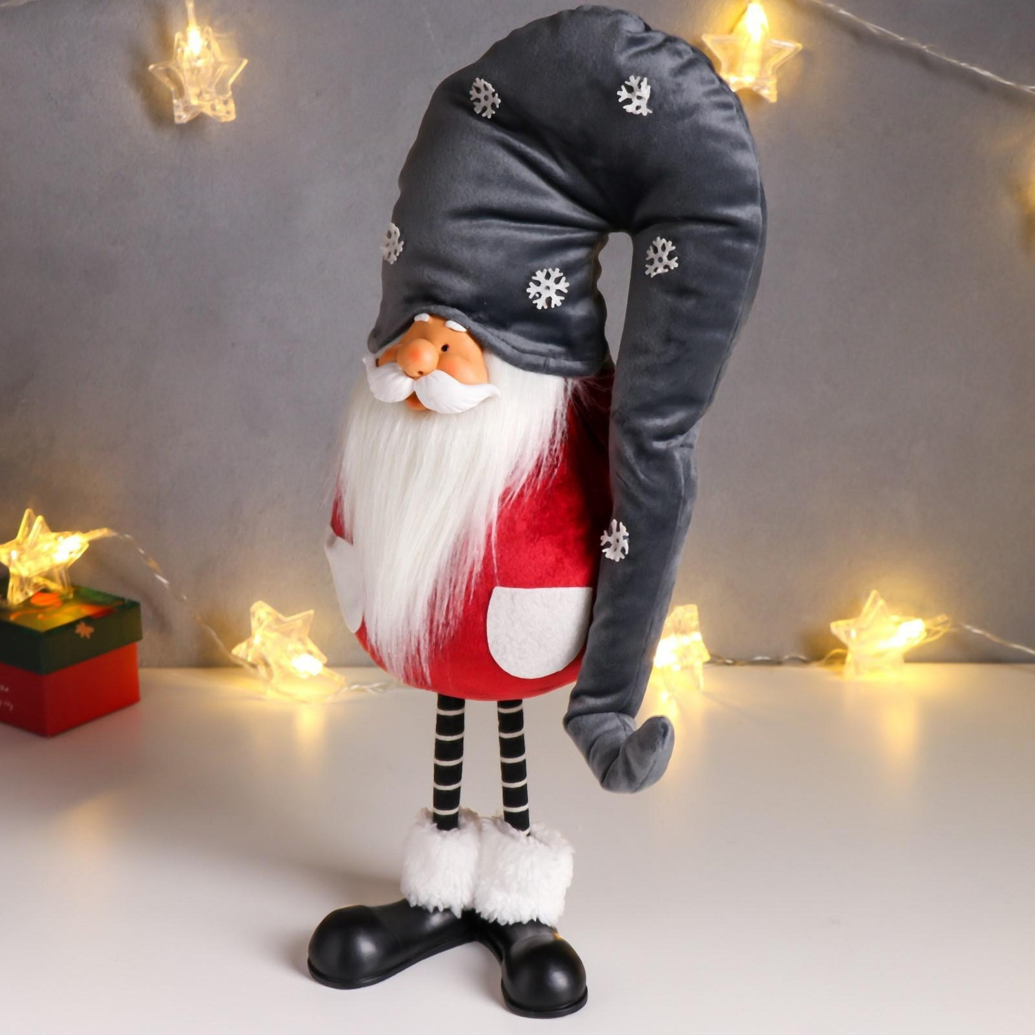 Кукла интерьерная "Дед Мороз в бордовом кафтане, в сером колпаке со снежинками" 42х13х18 см 626