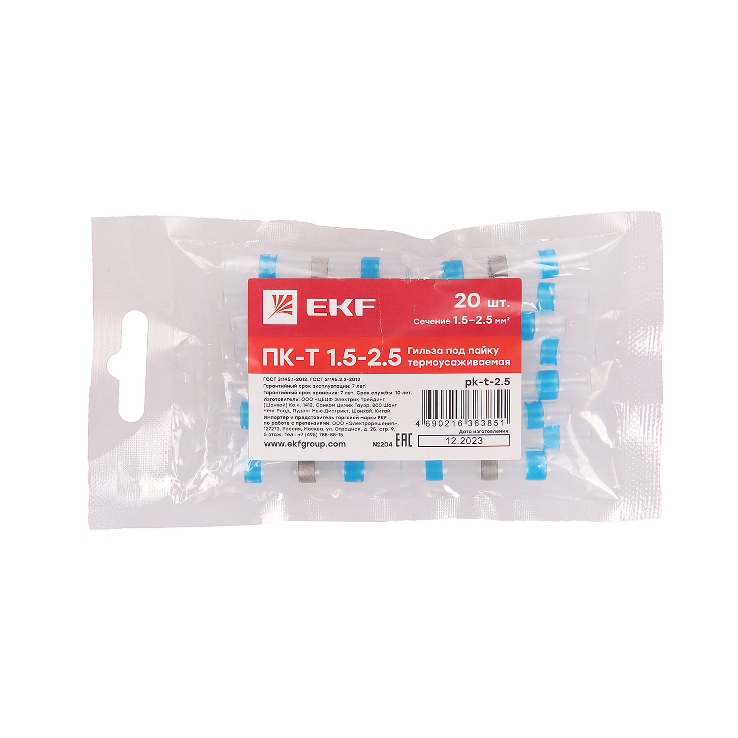 Гильза термоусаживаемая ПК-Т 1.5-2.5 под пайку упаковка 20шт EKF pk-t-2.5  *1