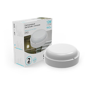 Светильник накладной светодиодный12Вт 4,0К 940Лм IP65  круг белый сенс ЖКХ Gauss 126411212-S *1/40