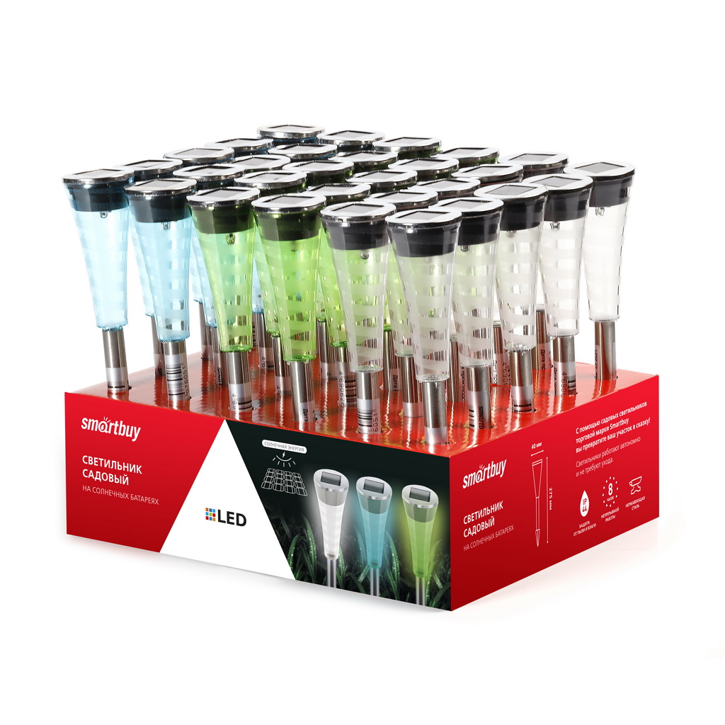 Светильник садовый на солнч. батарее нерж сталь пластик 4x4x27,5 см Smartbuy SBF-110 *6/30