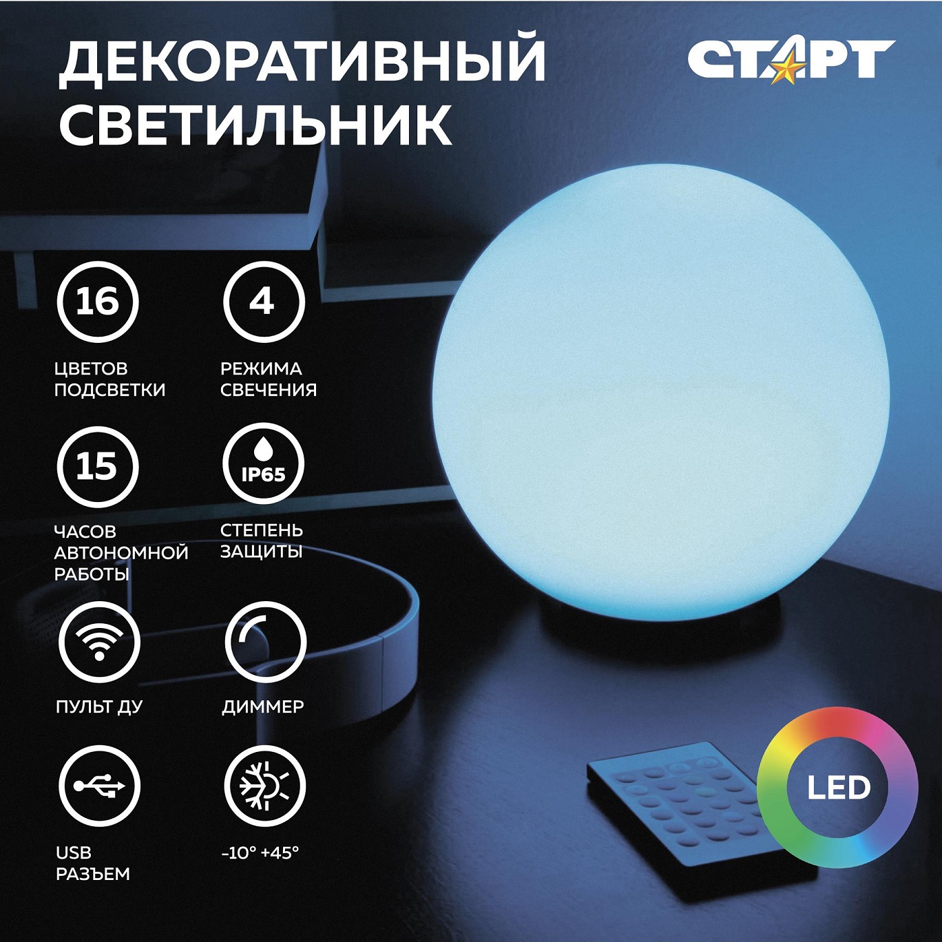 Светильник светодиодный Старт Globe 250мм *1/8