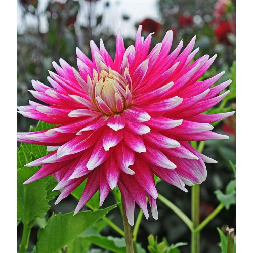 Георгина декоративная - это самый представительный и многочисленный класс георгин. Полностью махровый цветок, диаметром от 10 до 25 см, имеет плоские лепестки (язычковые цветки), слегка закрученные и отогнутые к стеблю, что делает его необыкновенно пышным и эффектным.