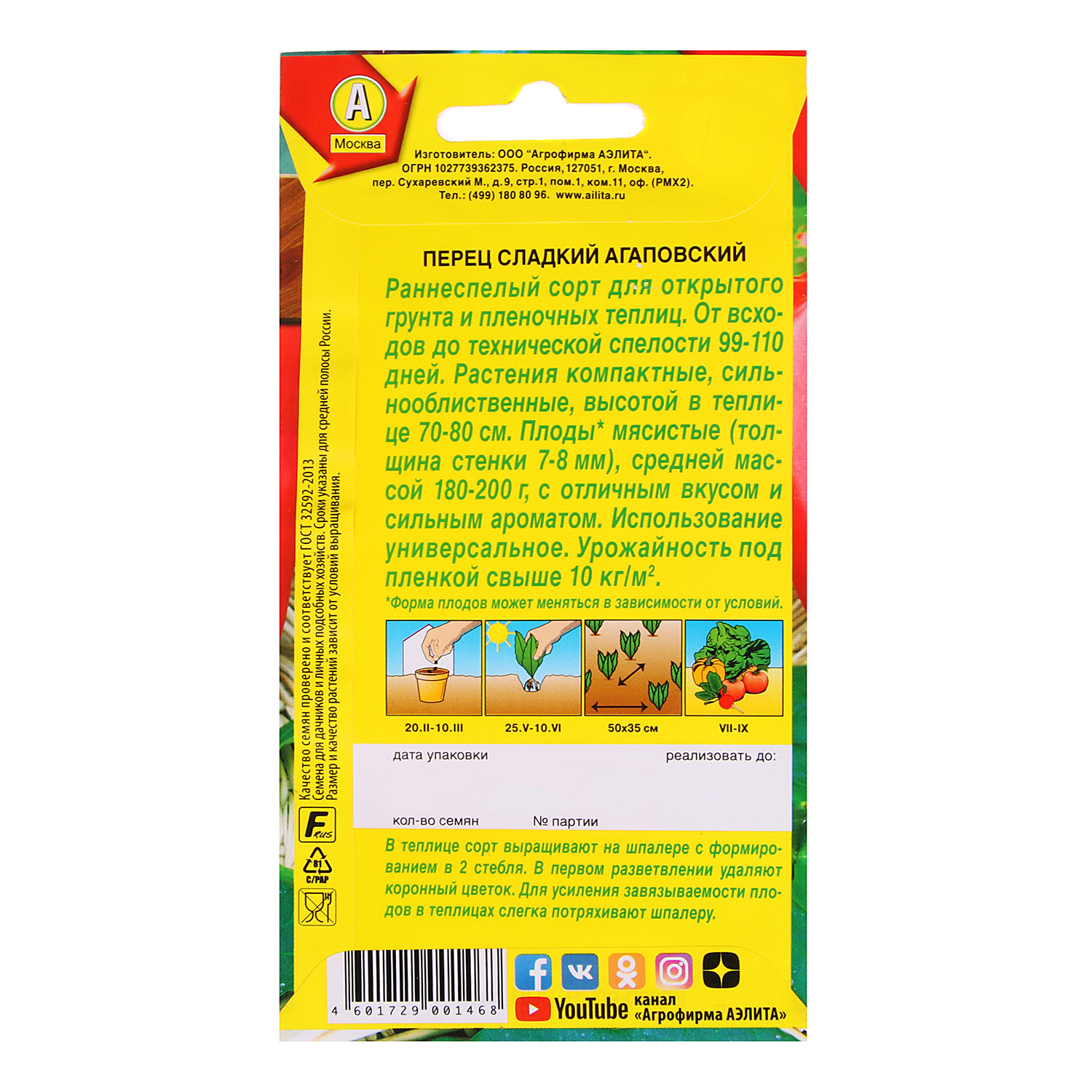 Семена Перец сладкий Агаповский 0,3гр Аэлита цв *10/500