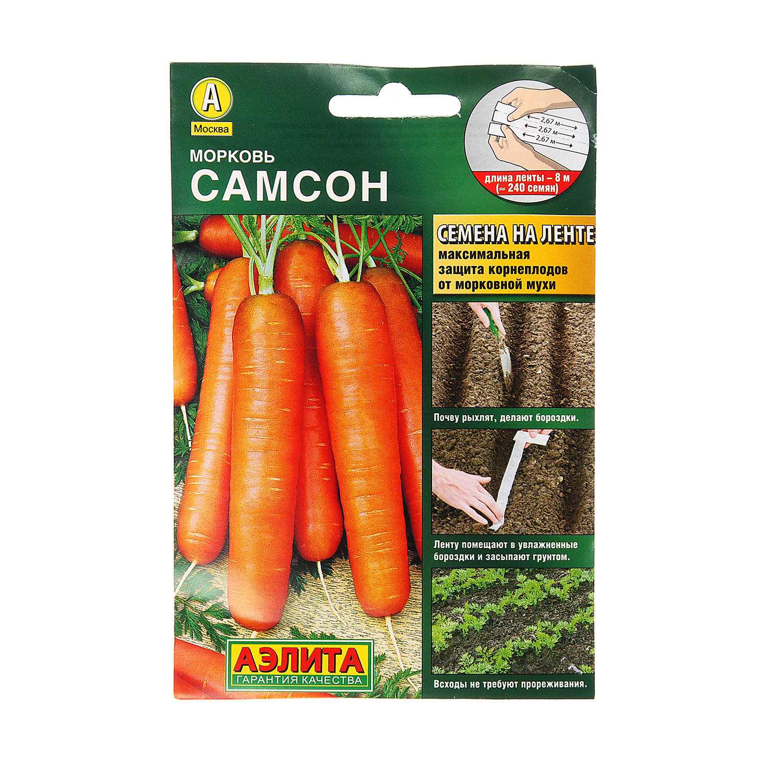 Семена Морковь Самсон 8м ЛЕНТА Аэлита *10/500