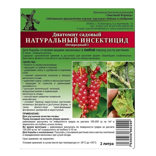 Диатомит садовый натуральный инсектицид почвоулучшитель 2л *16/768