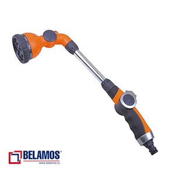 Разбрызгиватель душ Belamos на короткой ручке, выполнен из металла. Имеет 9 режимов полива. Совместимость со всеми адаптерами и быстросъемными соединителями поливочной системы Belamos.
