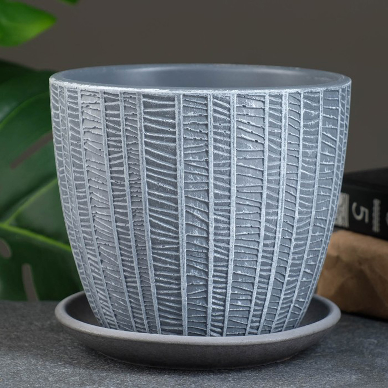 Кашпо керам. "Бутон" "Метро" 1,31л d верха 146мм h130мм с поддоном Светло-серый №2 КС-Б2-111-46 *9