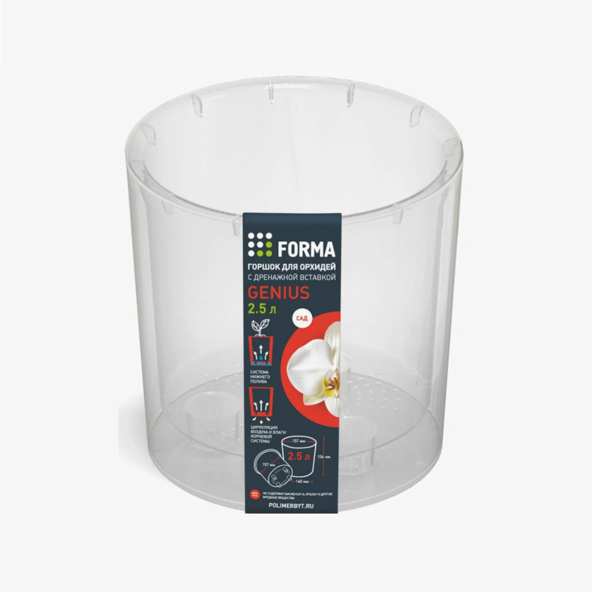 Кашпо пластм. "Genius" 2,5л d верха 157мм h156мм со вставкой Прозрачный 76401 *1/16