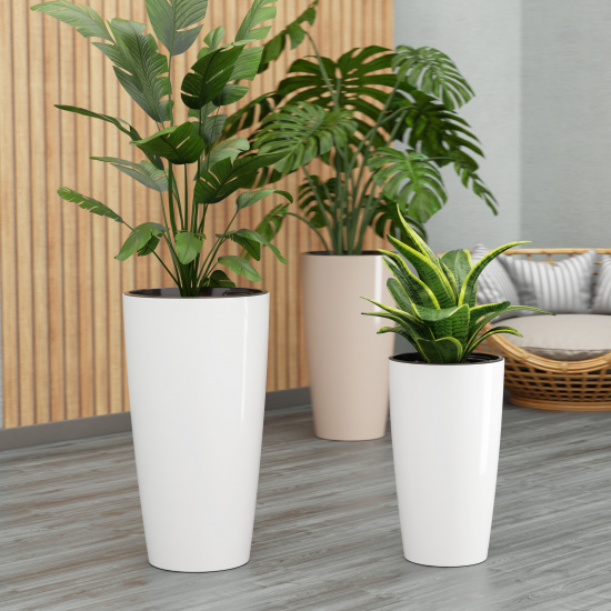 Кашпо пластм. "Рондо" высокое 71л d 400мм h755мм, со вставкой 23л Белый М8877 (ЗПИ "Альт.") *1