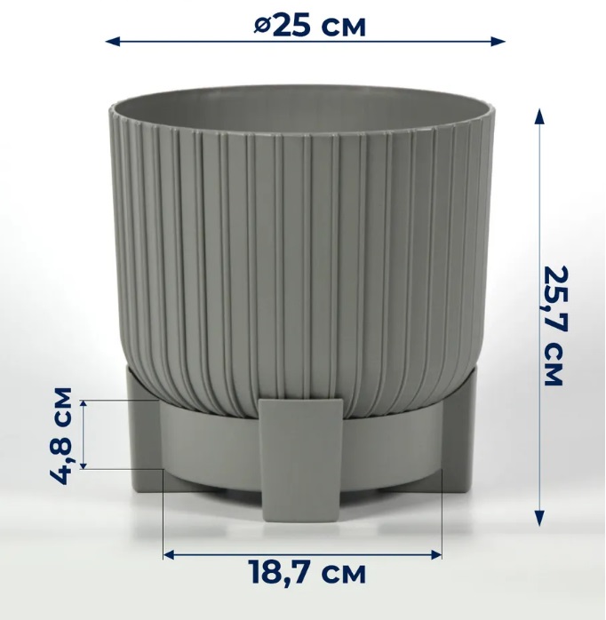 Кашпо пластм. "Торин" 9,5л d верха 250мм h 257мм с поддоном Серый 5 0792 PL *1/3