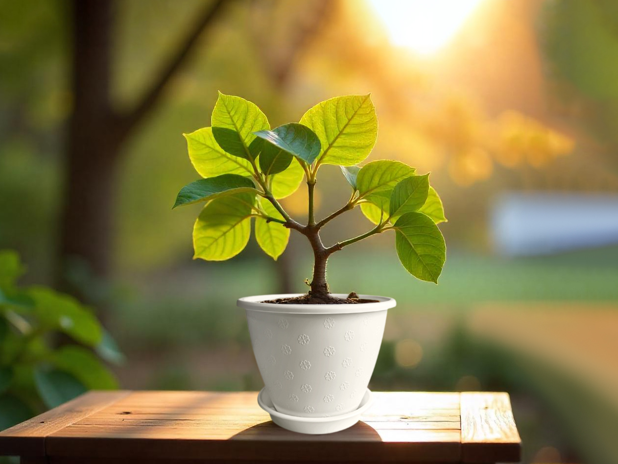 Кашпо пластм. "Цветочек" 2,1л d верха 180мм h140мм с поддоном Белое КЦ 2,1Б "ПластоС" *1/70