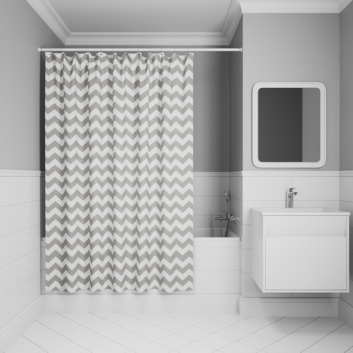Штора для ванной "IDDIS" п/эстер 200*180см Зигзаг, светло-серый BR02P18i11 *1/20