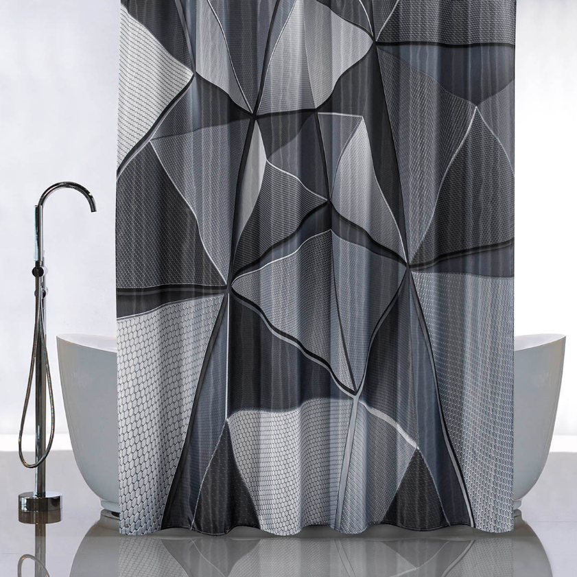 Штора  для ванной "Санакс" п/эстер 180*180см "Серые 3D фигуры"  без колец 01-82 *1/24