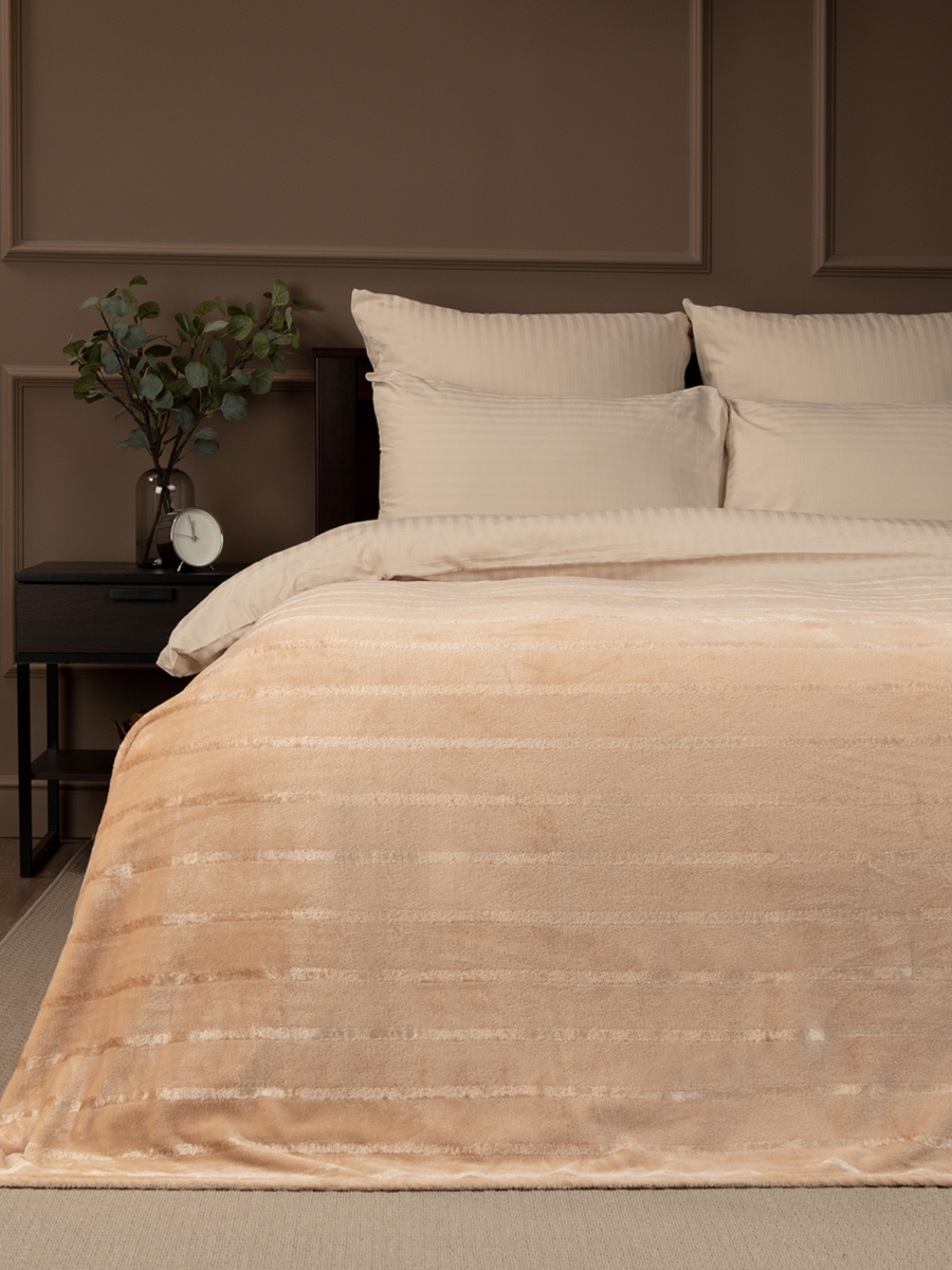 Плед 150*200см фланель однотонный страйп персиково-бежевый TF FNS BE8 1520 14-1212 Absolute *1