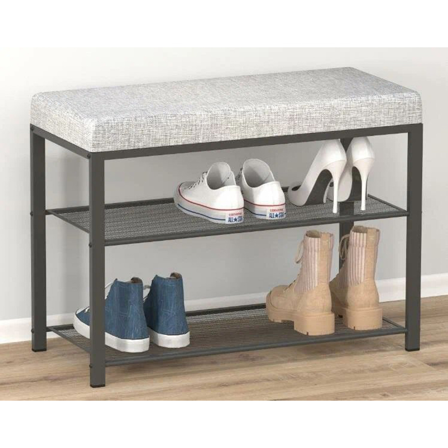 - Две полки вместят до 6 пар обуви, а продуманные расстояния между ними позволят разместить как летнюю, так и зимнюю обувь;