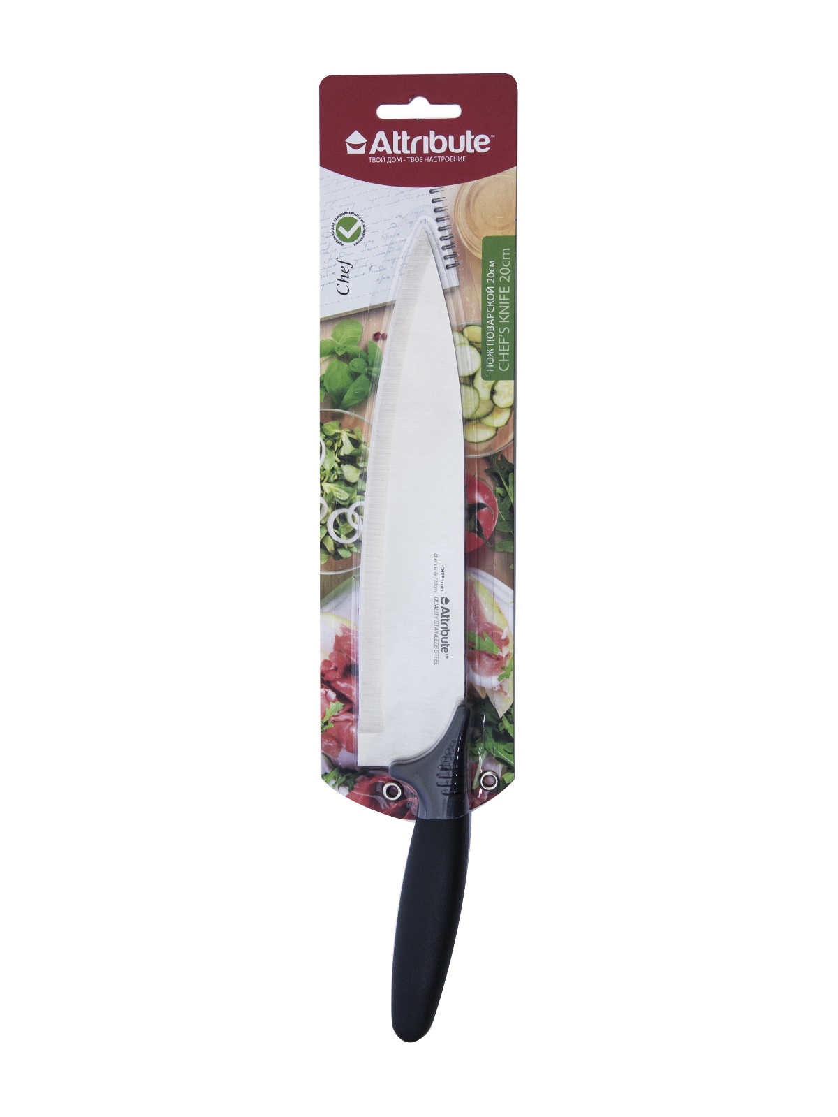 Нож кухонный ATTRIBUTE пл.р. Chef поварской дл.лезв.20см AKC028 блистер *1/6/36