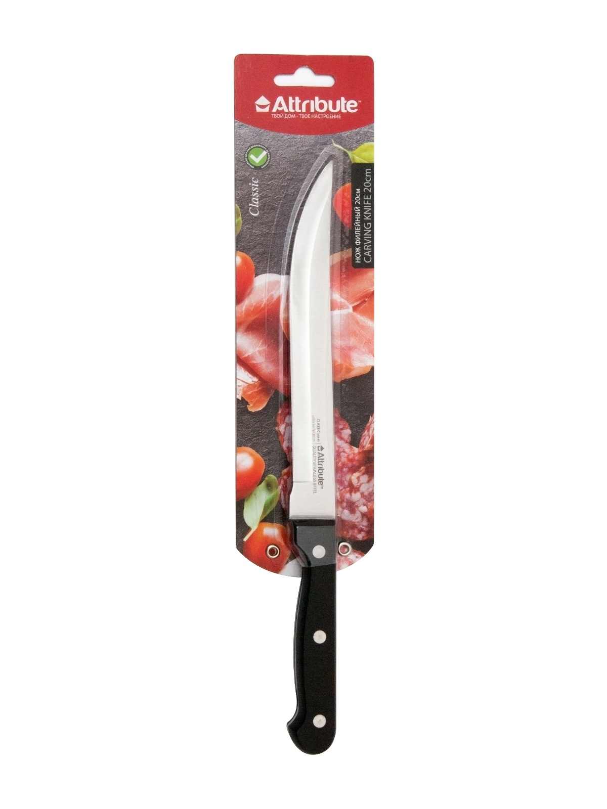 Нож кухонный ATTRIBUTE пл.р. Classic филейный дл.лезв.20см AKC118 блистер *1/6/36