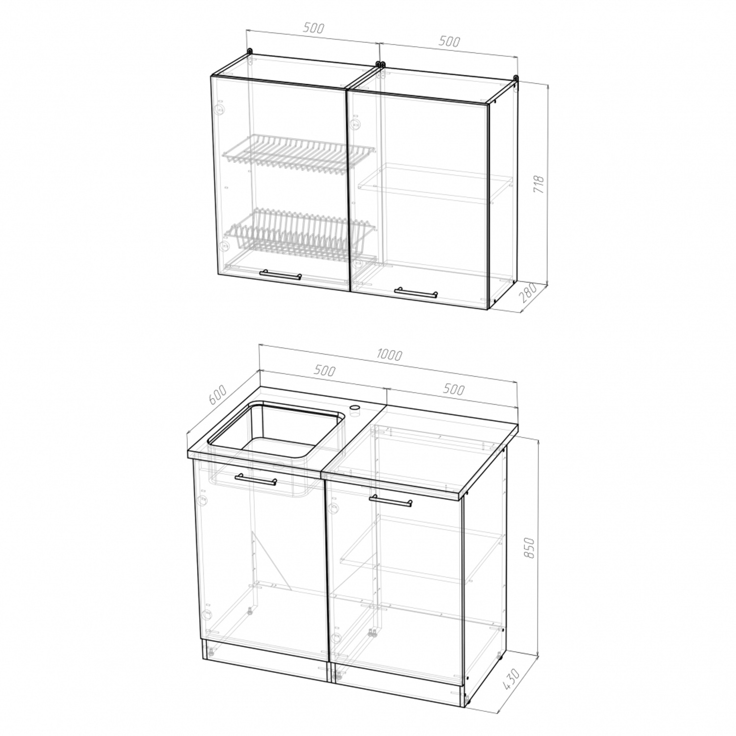 *мойки, смесители и посудосушители в комплекты гарнитуров не входят.