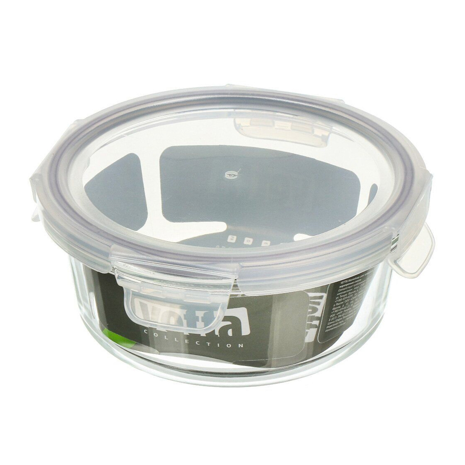 Контейнер д/прод. стекл. жаропр. 0,6л кругл. d180мм, выс.77мм пласт.крышка арт.825-013 "VETTA" *1/24