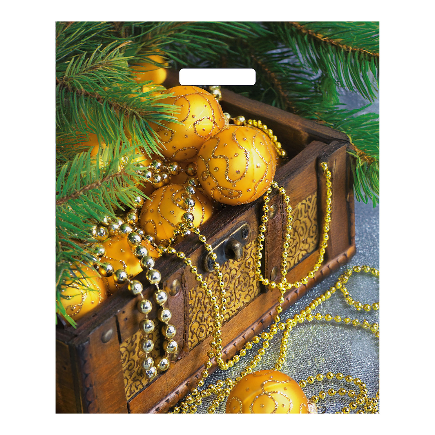 Пакет ПЭ с вырубной ручкой 38х45+3см (60) (Новогодние сокровища) НГ, глянцевый Артпласт (х25/500)