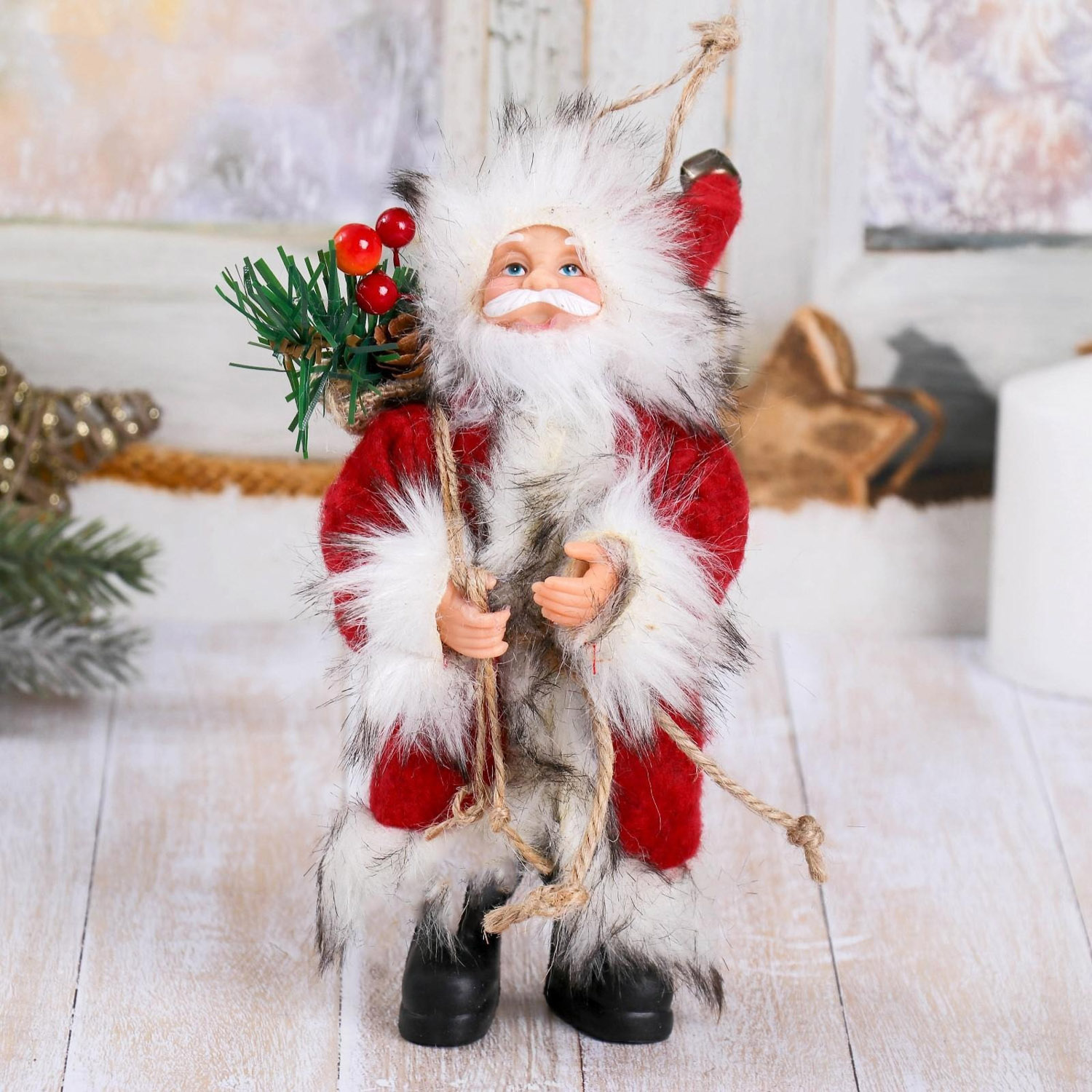 Дед Мороз в красной шубке с лесными гостинцами 16 см   4316754