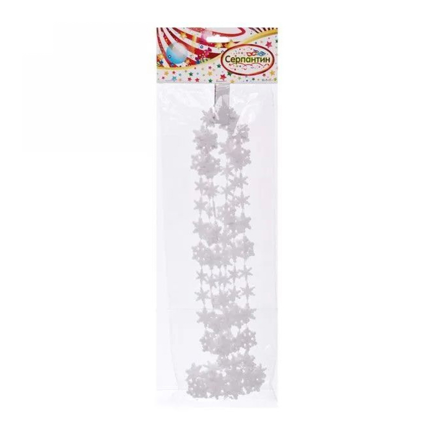 Бусы на елку Серпантин «Снежинки», 200 см, белый