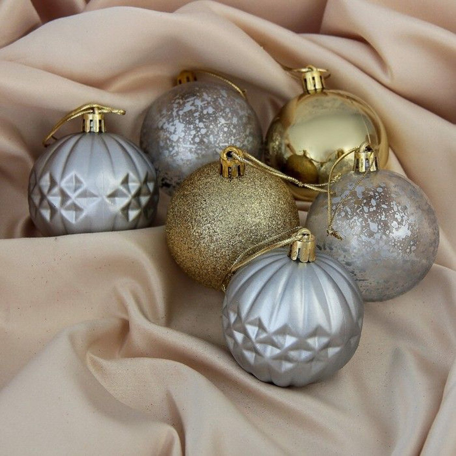 Набор шаров пластик d-6 см, 6 шт "Призма" серебристо-золотой 3259652