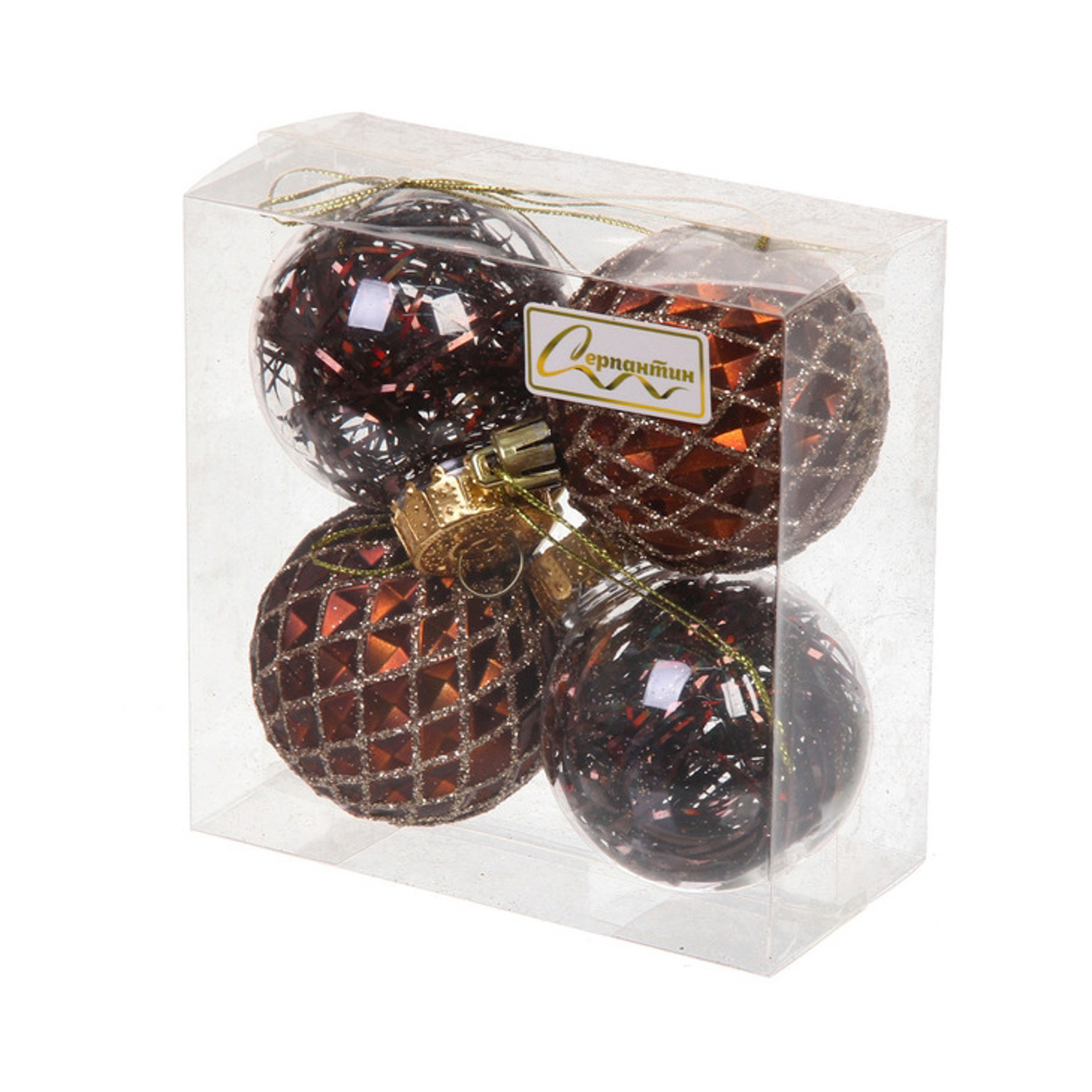 Новогодние шары 6 см (набор 4 шт) "Яркая метель", шоколад/шампань
