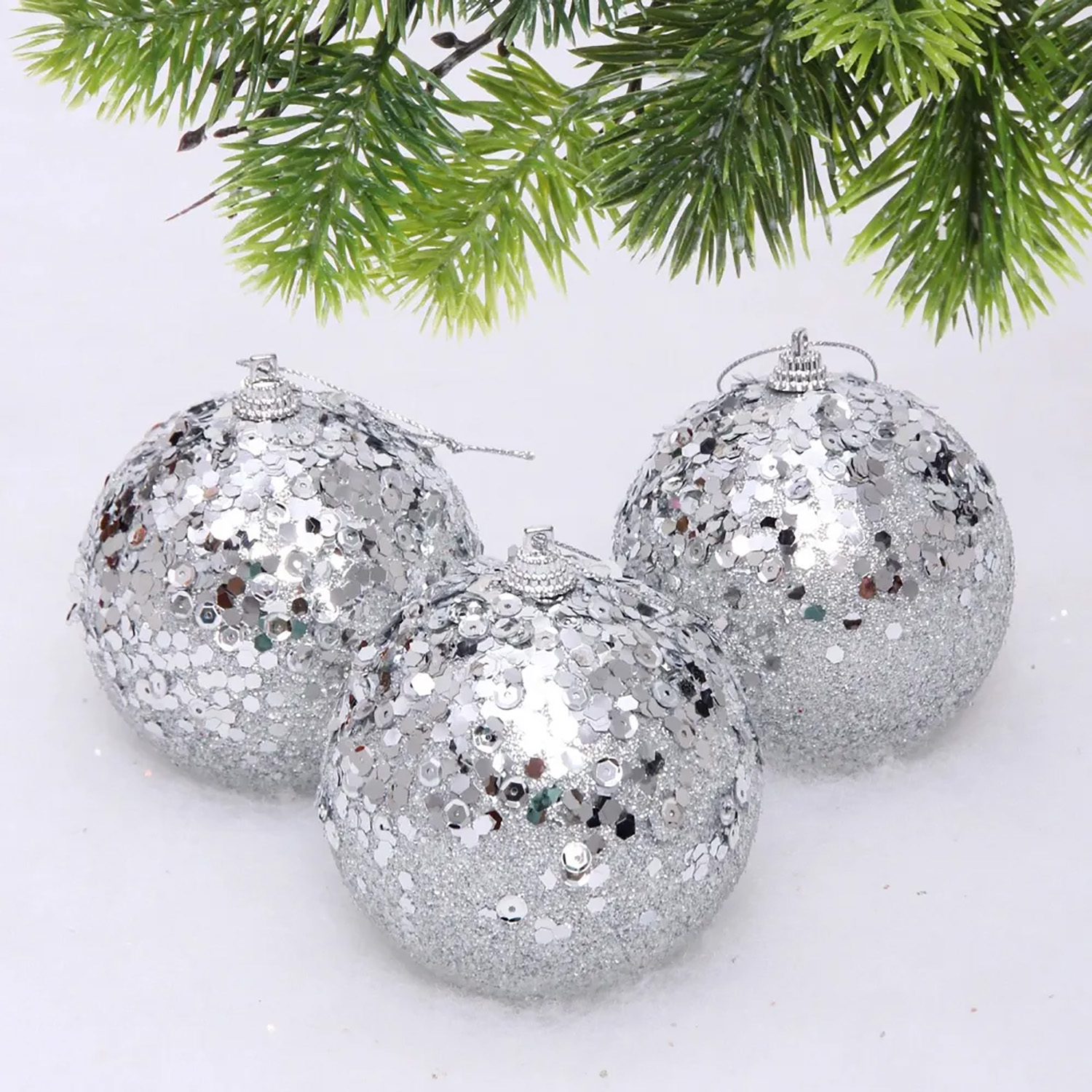 Новогодние шары "GLAME - Волшебный блеск" 8 см (набор 3 шт), Серебро