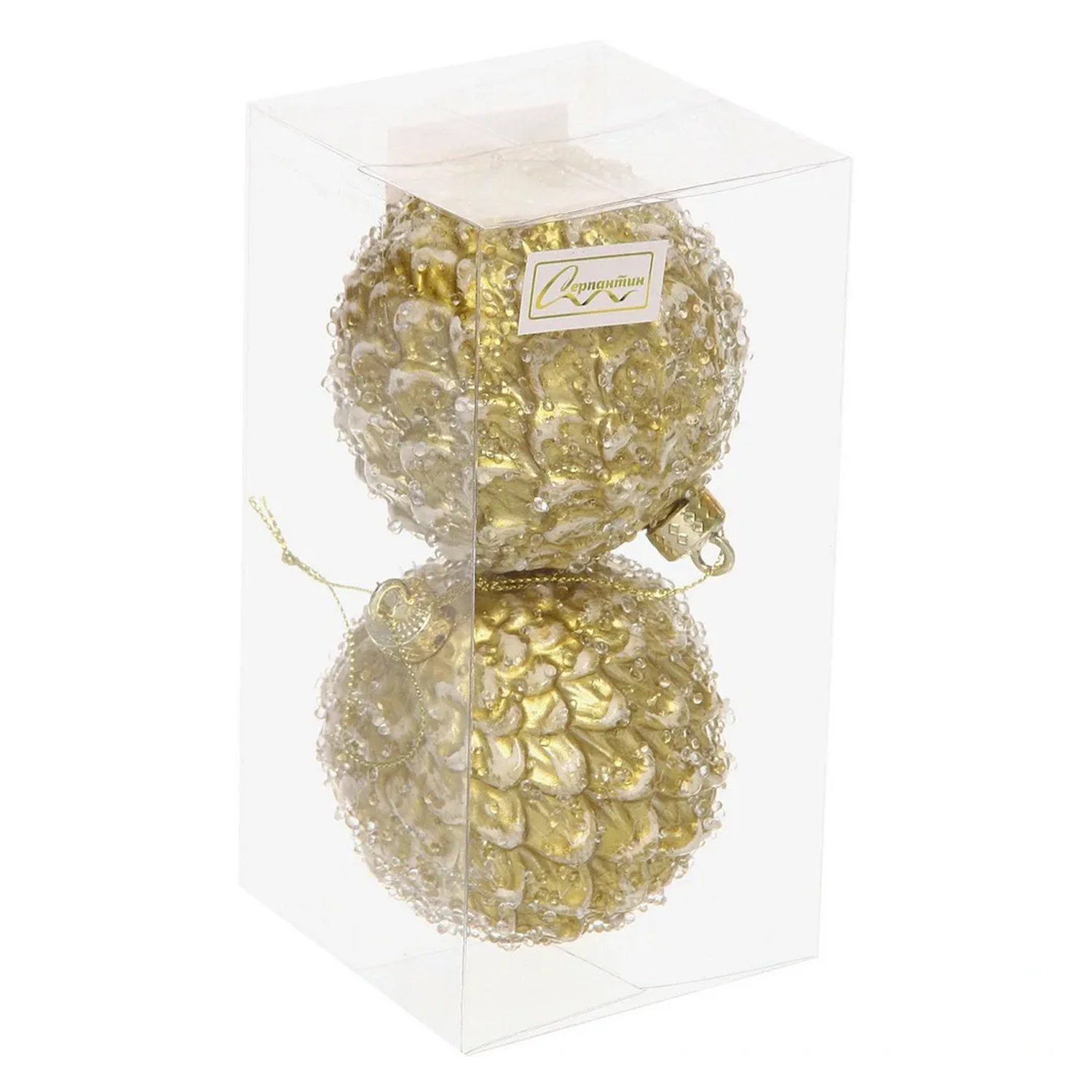 Ёлочные игрушки VERSAILLES "Еловый шар" 8 см (набор 2 шт), Золото