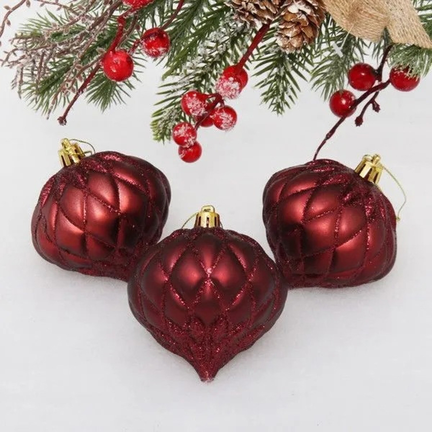 Ёлочные игрушки "Юла" 8 см (набор 3 шт), рубин
