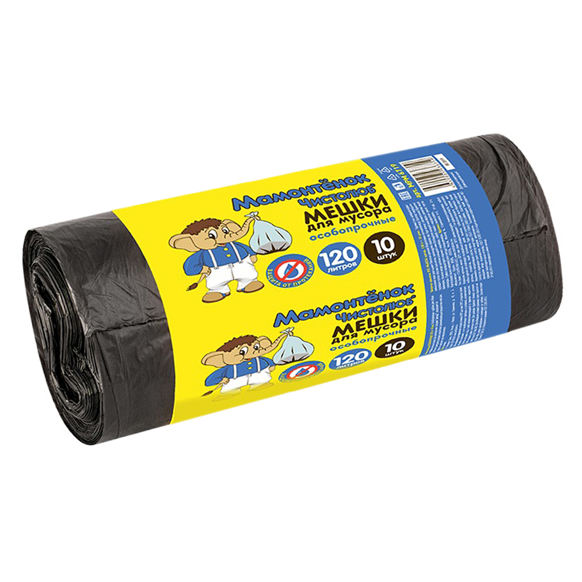 Мешки для мусора 120л*10шт толщ.20мкм "Мамонтёнок"  Особопрочные MPM6719 ("МультиПласт") *30