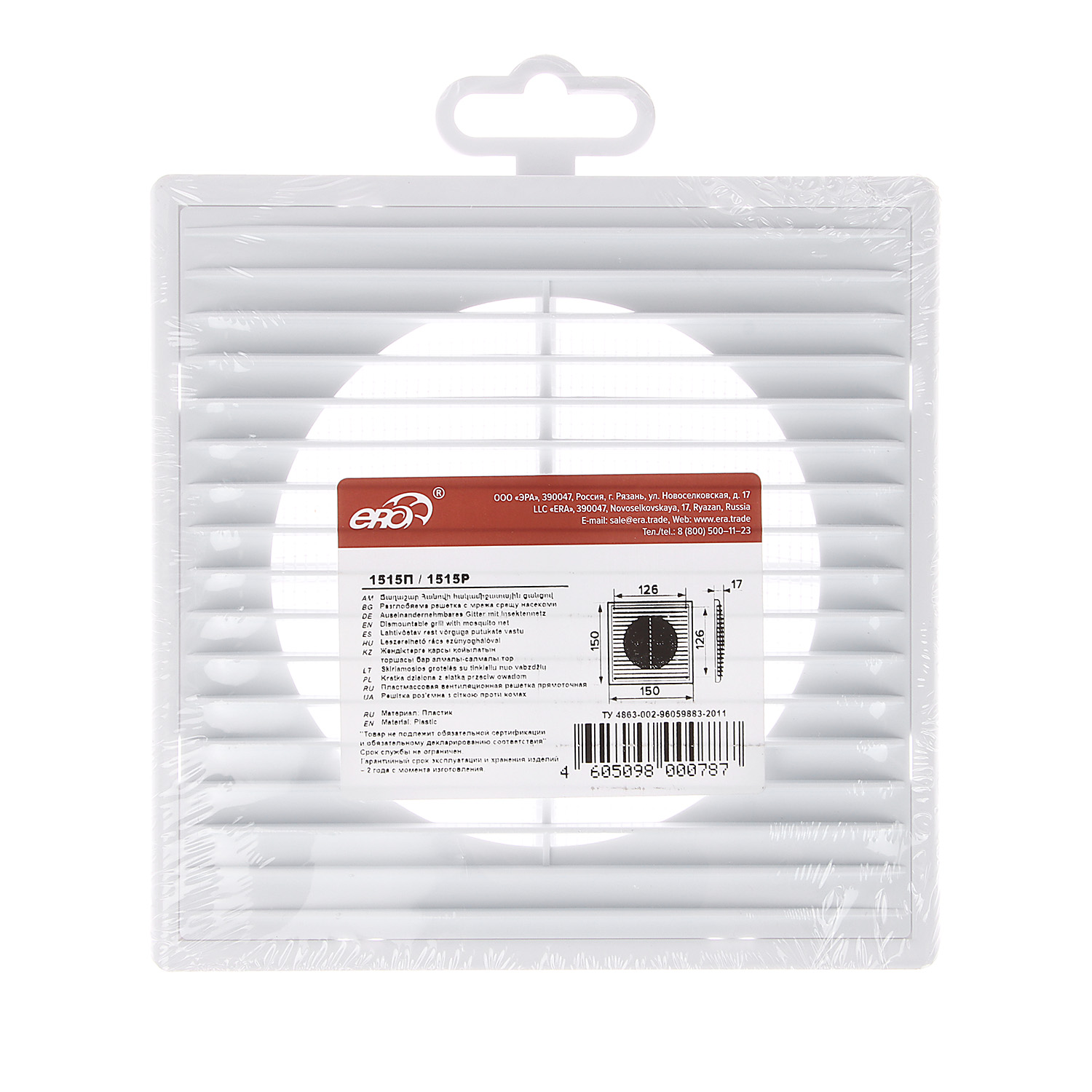 Решетка вентиляционная150х150мм 1515П Эковент (с сеткой) *1/50