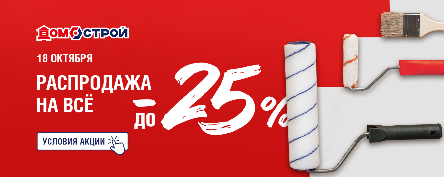 Распродажа только 18 октября! Дарим скидку до -25% на все товары с белыми ценниками. Если у вас запланирован ремонт, строительство или обустройство дома - не упустите возможность купить все необходимое со скидкой: